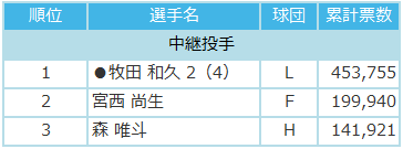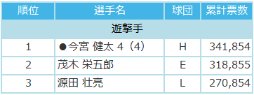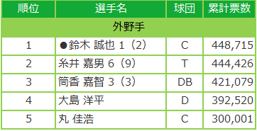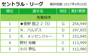 中間最終発表と比較しよう!マイナビオールスターゲーム2017 ファン投票 6/19発表分!