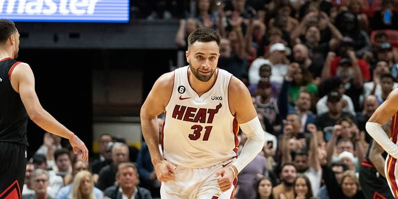 ヒートは試合開始からマックス・ストゥルースが怒涛の勢いで3ポイントシュートを沈め、第1クォーターを29-21と8点のリードで終了。第2クォーターでは互角の接戦が繰り広げられ、要所でタイラー・ヒーローやストゥルースらが得点を挙げる。ゴール下ではバム・アデバヨがリバウンドを連取し、49-44と5点を先行して試合を折り返した。