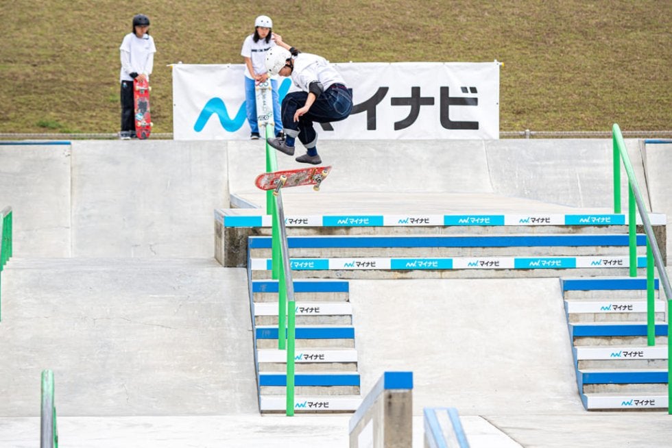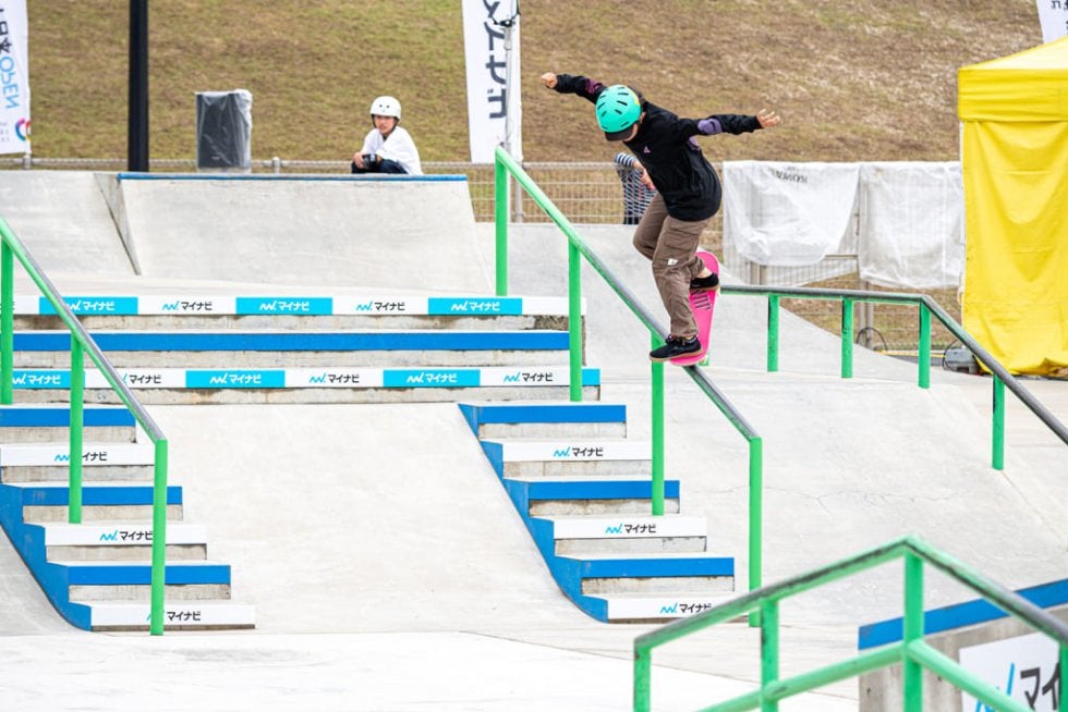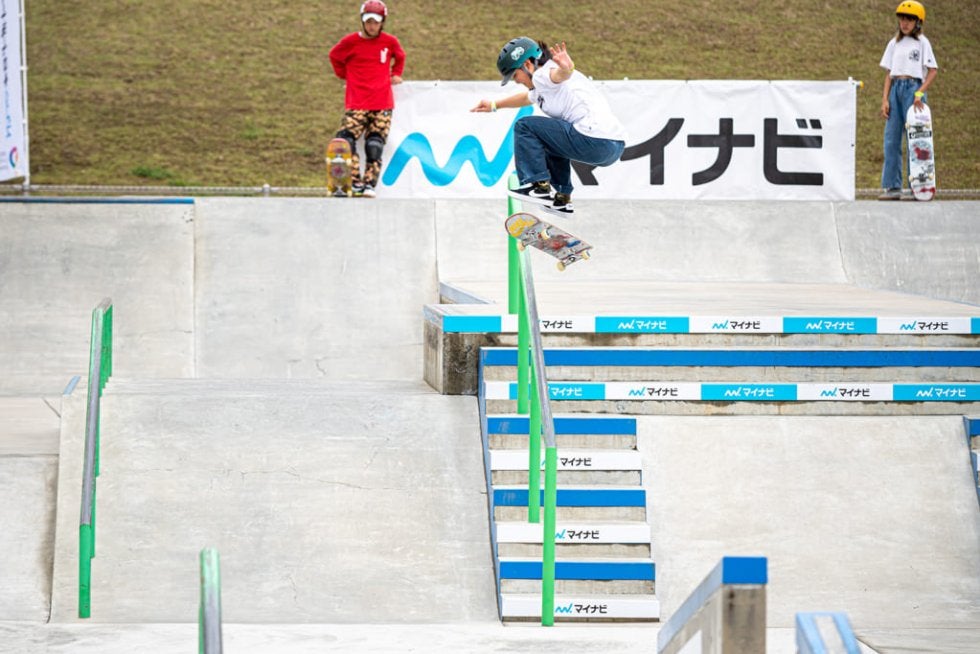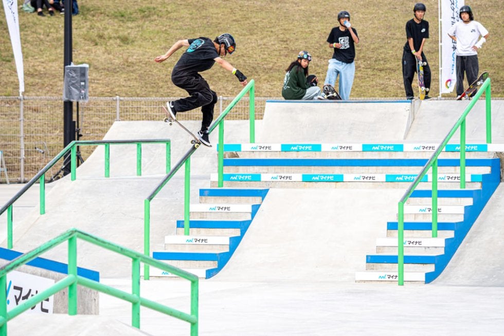 数年前までの女子の世界は、ハンドレールなどのビッグセクションは「できるだけで凄い」時代だったのだが、世代が入れ替わった現在は、できるだけでは勝てなくなっている。そこから発展した結果が「回しトリックから入る」というひとつの流れを作っているのだと感じた。