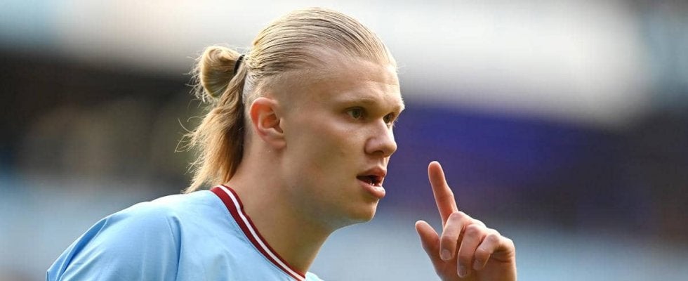 マンチェスター・シティのノルウェー代表FWアーリング・ハーランドが青に身を包んでいる。 今シーズンからプレーするシティで…