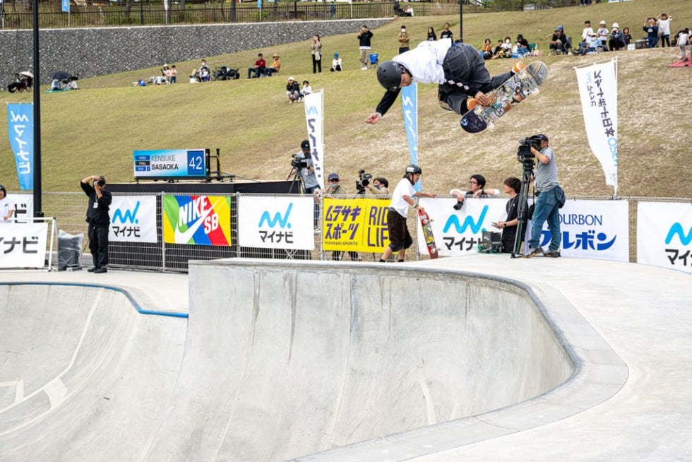 続いて今回は3位に甘んじてしまった笹岡建介。出場者唯一の20代であり、最年長となった彼は長きに渡り日本パークシーンを牽引してきた第一人者。まだ24歳ではあるのだが、彼の次の年長者が19歳だったことを考えると、日本のティーンエイジャーがいかに層が厚いかということと共に、彼がどれだけ長い間トップに君臨し続けてきたのかがお分かりいただけるだろう。