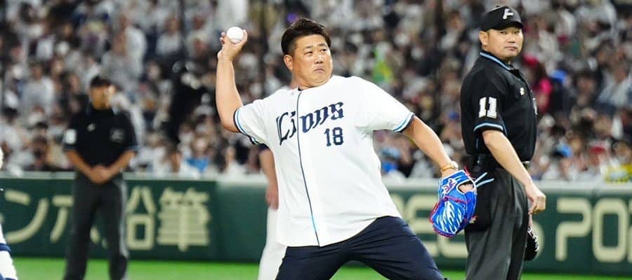 西武対ソフトバンク戦の始球式に登場した松坂大輔氏【写真:荒川祐史】