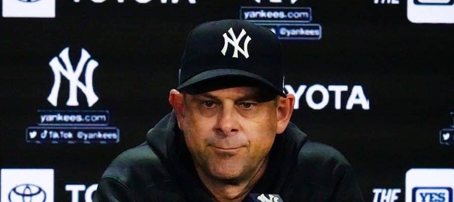 試合前の会見に臨んだヤンキースのアーロン・ブーン監督【写真:小谷真弥】