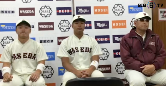 【ヒーローインタビュー】早稲田大学 小宮山悟監督・野村健太(④山梨学院)・尾瀬雄大(②帝京)