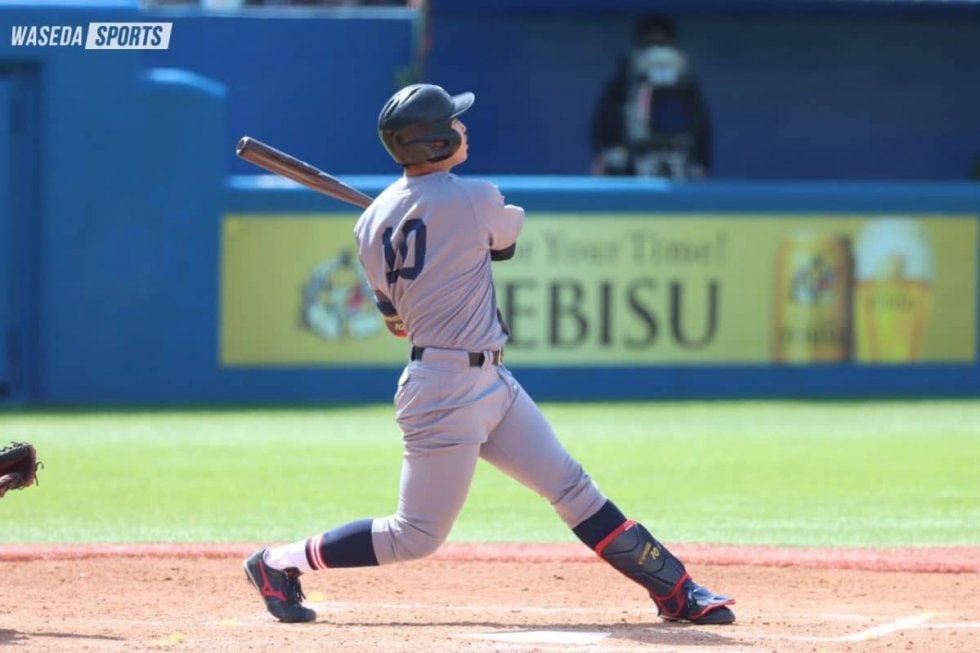 追い込まれた最終回、一死から2番・吉川海斗(4年)が中前安打で出塁。3番廣瀬が捕飛に倒れるものの、4番本間颯太郎(3年)が四球を選びこの試合初めて得点圏に走者を進める。しかし、代打・善波力(4年)が三振に倒れ試合終了。最後に好機をつくるも生かせず、カード2回戦を1-5で敗北した。