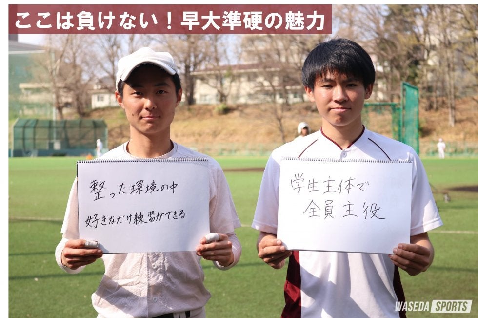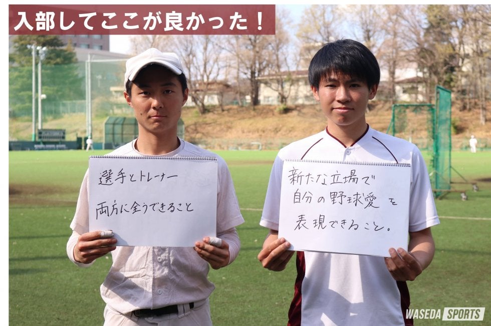 徳留 「共に目指そう日本一のスタッフ陣」という言葉を書かせていただきました。早稲田大学準硬式野球部に入って一番驚いたことはスタッフ陣の熱量で、プレーする選手を支えるのはわれわれスタッフ陣で、その熱量は日本一だと感じているので、新入生の皆さんでスタッフを志望される方は、このような日本一のスタッフ陣で選手と共にチームの日本一を目指していきましょう。
