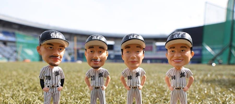 ロッテは24日、5月7日のソフトバンク戦(ZOZOマリン)で配布する「レジェンドボブルヘッド」のデザインが決定したと発表した。吉井理人監督、福浦和也ヘッドコーチ、黒木知宏投手コーチ、サブロー2軍監督がモデルとなっている。