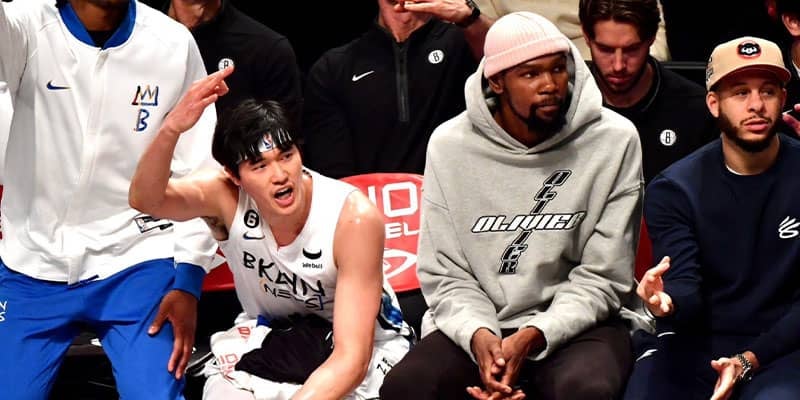 ドラフト外ながらNBAキャリア5年目を終えた渡邊は「今シーズンもたくさんの応援ありがとうございました。何もかも成長に繋がりました!もっといろいろ書きたいですが、濃すぎたシーズンすぎて書ききれません」とSNSにつづると、デュラントが反応。「ユウタ、最高のシーズンだったね。あなたとプレーするのが大好きだったよ。マイブラザー」とコメントすると、渡邊も「ありがとう 7(デュラントがネッツ時代につけていた背番号)! とてもうれしい。あなたの隣でプレーできたのは光栄だよ」と返信した。