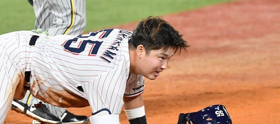村上宗隆、気迫のヘッスラで執念の内野安打 一塁へ猛ダイブ…12打席ぶり「H」ランプ