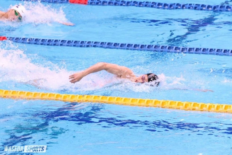 男子は今大会の目標を人ベスト率55%と掲げ、一人一人のレベルアップを目指した。総合成績は1位の明大から84点離されての3位だったが、チャレンジレースも含めてのべ20人が日本選手権(25m)の標準記録突破を達成。中でも原空輝(スポ2=東福岡)は100メートルと200メートル自由形で2冠を果たした。また1番手を任された4×100メートルフリーリレーでは通常レースで出したタイムを大きく縮め、大会記録を47秒台に押し上げる活躍を見せる。須田悠介(スポ3=神奈川・湘南工大)は得意の50メートル自由形で、自身が保持していた大会記録を0秒05上回って優勝。メドレーリレーとフリーリレーにも出場し、チームに貢献した。山本拓武(スポ2=千葉・成田)は100メートルバタフライに登場し、早大出身の幌村尚(令2スポ卒=現あいおいニッセイ)が持っていた大会記録を0秒01更新しての優勝となった。