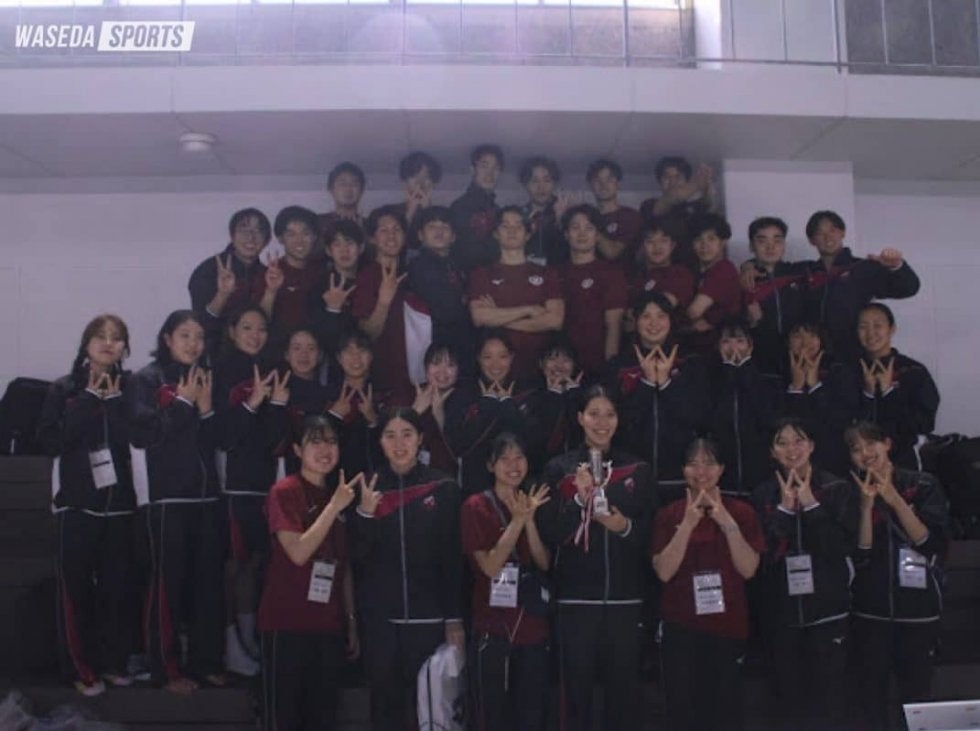 女子は近年法大の力が強く、2位に甘んじてきたが、今回は目標に掲げた総合優勝を2013年以来につかみ取った。特に今大会で優秀選手に選出された松本信歩(スポ3=東京・東学大付)の活躍が光る。リレー2種目を含め、出場した5種目で全て1位を獲得。そのうち100メートルの自由形で大会新、バタフライでは大会タイ記録をマークした。また50メートル自由形では、今牧まりあ女子主将(スポ4=長野・飯田)と船越彩梛(スポ2=東京・淑徳巣鴨)がともにそれまでの大会記録を上回って、早大勢で上位を独占。今牧女子主将は今大会で初めて長水路の記録を上回り、「良い収穫」と振り返った。この他にも亀井涼子(スポ2=東京・淑徳巣鴨)が50メートルと100メートルの背泳ぎで、小原天寧(スポ2=東京・目黒日大)が400メートルと800メートルの自由形でそれぞれ日本選手権(25m)の参加標準を破った。
