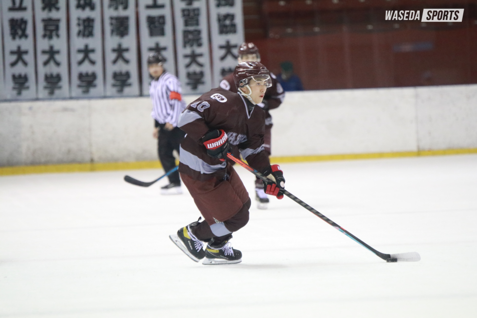 第2ピリオド、21分45秒(※)、パワープレーの場面で、ボード際でパックを取り合い混戦となるも早大がものにし、FW笹沼葵(教1=東京・早実)へパスを出す。そのまま、FW笹沼が放ったシュートは相手のDFをすり抜け、1点を取り返した。その流れのまま、攻撃を仕掛ける早大。しかし、FW鎌田悠希主将(スポ4=北海道・駒大苫小牧)がシュートをするも堅い守りを持つ相手のGKにパックを捕られてしまう。その後も果敢にシュートを狙っていくものの、相手の素早い対応によりパックをゴール前まで運ぶことができない。後半、この点差を広げまいと粘り強く守る早大だが、ゴールを守りきれずに得点を許してしまう。