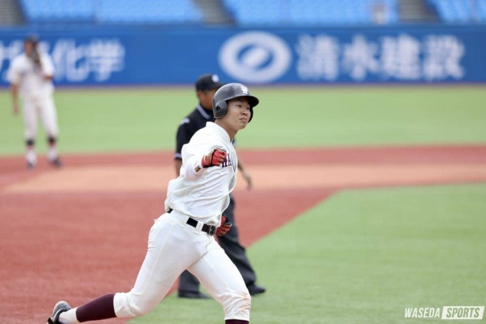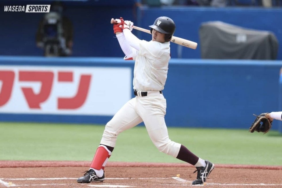 しかし、その後はテンポよく150キロ台の直球を投げ込む篠木の前に早大打線はなかなか思うような攻撃ができず。淡々とアウトを積み重ねていく早大先発・加藤と篠木の投げ合いとなった。加藤は4回、2死から四球と安打で一、二塁のピンチを招くと、6番・浦和博(4年)に4球目を右前に運ばれる。右翼・.000の返球はわずかに間に合わず、試合を振り出しに戻された。