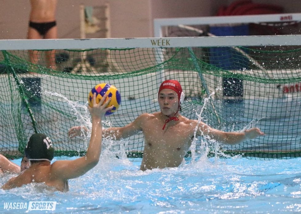 思うような結果が残せなかった昨季を噛みしめ、水球男子の新シーズンが幕を開けた。今季のチームスローガンは「不撓(ふとう)」。高い壁にぶつかってもチーム一丸となって壁を越えていく、妥協することなくこの1年をやり遂げるという意味が込められているという。そんなチームにとって大きな目標となる関東学生リーグ戦に向け、前哨戦となる六大学合同練習会が3週に渡り開催された。この日はその2週目にあたり、慶大、成蹊大と対した。1年生ながらすでに主戦力となっている加納恒心(スポ1=明大中野) や、昨年卒業した谷健太朗氏の後継となるべく、加納凪人(スポ2=三重・四日市中央工)、渡邉空(スポ2=新潟産業大付)両キーパーの奮闘も見られ、2戦勝利を収めた。