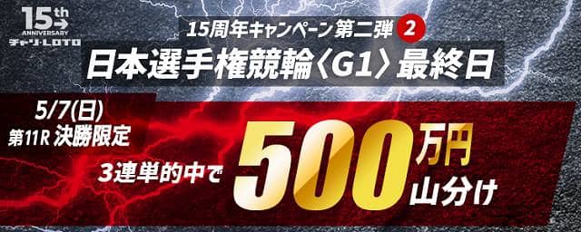 【15周年キャンペーン第二弾 日本選手権競輪(G1)2大山分けキャンペーン】