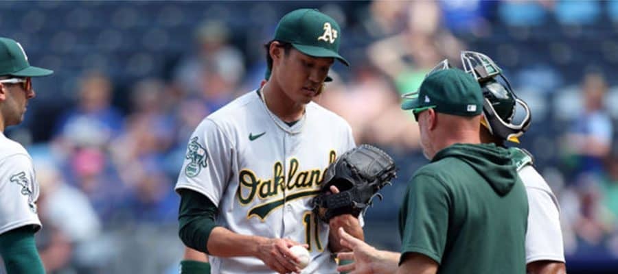 ロイヤルズ戦に登板したアスレチックス・藤浪晋太郎(中央)【写真:Getty Images】