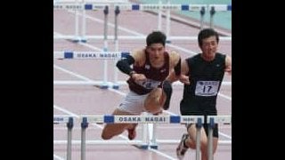 決勝のレースを走る池田 男子110メートル障害には池田海(スポ3=愛媛・松山北)が出場。予選は着順で突破して決勝に進んだ…
