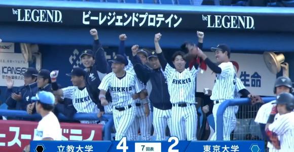 立大 4 - 2 東大勝: 池田陽佑 敗: 鈴木健東大は初回、別府洸太朗(④東筑)のタイムリーで先制。追う立大は4回、戸…