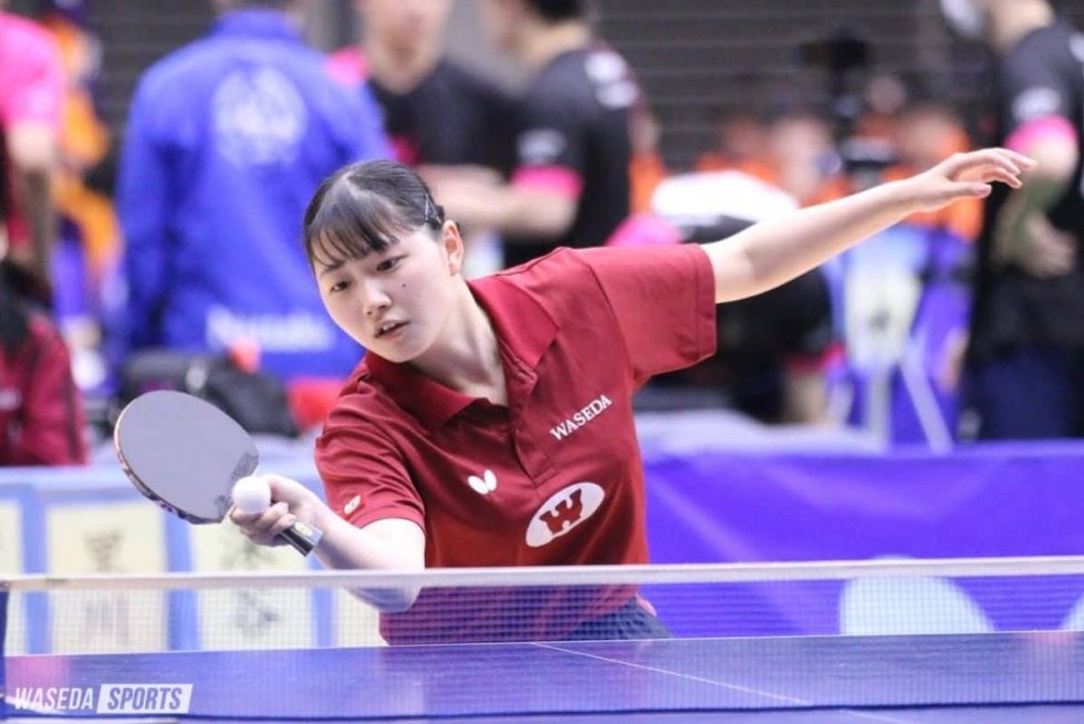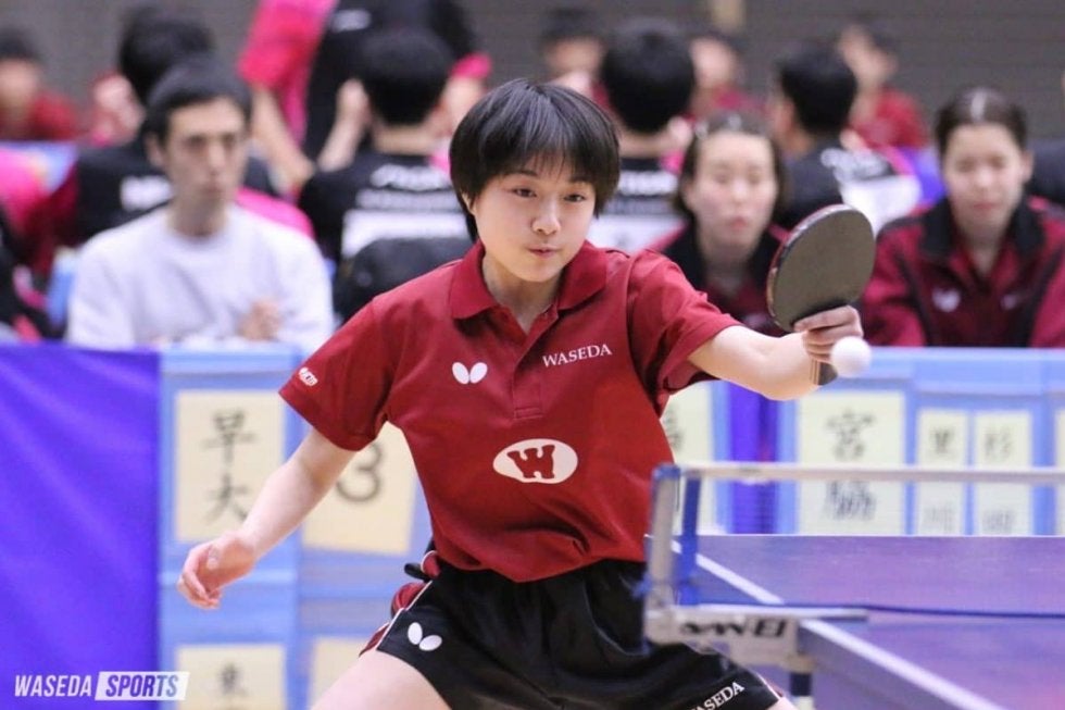 1番手の杉田陽南副将(スポ3=大阪・香ヶ丘リベルテ)は安定したプレーで3ゲームを危なげなく取り切り、早大に勢いをもたらした。続く福岡乃愛(スポ3=兵庫・三田学園)が終盤の連続得点で第1ゲームを先取するも、長いラリーで粘り切れず、第2、第3ゲームを落としてしまう。取り返したい第4ゲーム、タイムアウト後の連続得点で、一気にリードを広げる。しかし、その後得点が続かず逆転を許し、1-3で試合を終えた。3番手の宮脇心和子(社2=鳥取敬愛)は、第1ゲームを落としたものの、すぐさま続くゲームを取り返し、接戦に持ち込んだ。勝負の第5ゲーム、連続で長いラリーを制し、11-9で白星をつかんだ。