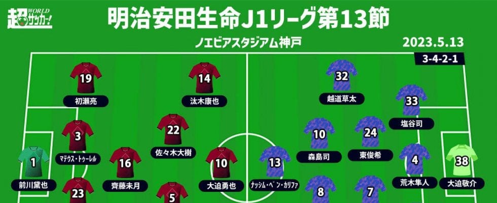 【明治安田生命J1リーグ第13節】 2023年5月13日(土) 14:00キックオフ ヴィッセル神戸(1位/26pt) …