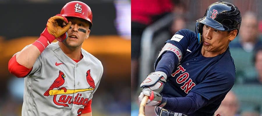 カージナルスのラーズ・ヌートバー(左)とレッドソックス・吉田正尚【写真:Getty Images、ロイター】
