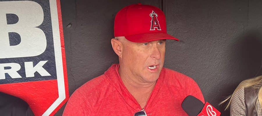 試合前の取材に応じたエンゼルスのフィル・ネビン監督【写真:川村虎大】