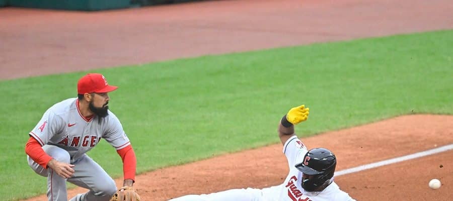 ガーディアンズ戦に出場したエンゼルスのアンソニー・レンドン(左)【写真:ロイター】