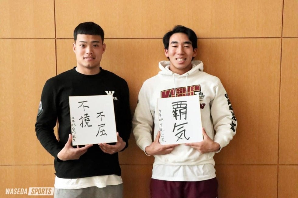 第7回はRB安村充生(文構4=東京・早実)と中尾公亮(社4=東京・早実)が登場。WR目黒歩偉主将(スポ4=東京・佼成学園)とともにチームをと牽(けん)引するお二人に、今シーズンの意気込みを伺った。