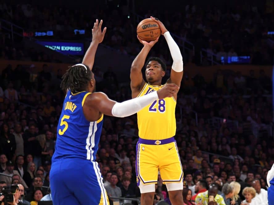 レイカーズはシリーズを戦う中で見いだしたウォリアーズ対策である3ガードをこの試合でも採用。ディアンジェロ・ラッセル、デニス・シュルーダー、オースティン・リーブスが先発に名を連ね、ウォリアーズのスピードとスペーシングに対抗し、ウォリアーズのお株を奪う3ポイントシュート攻勢で先手を取った。