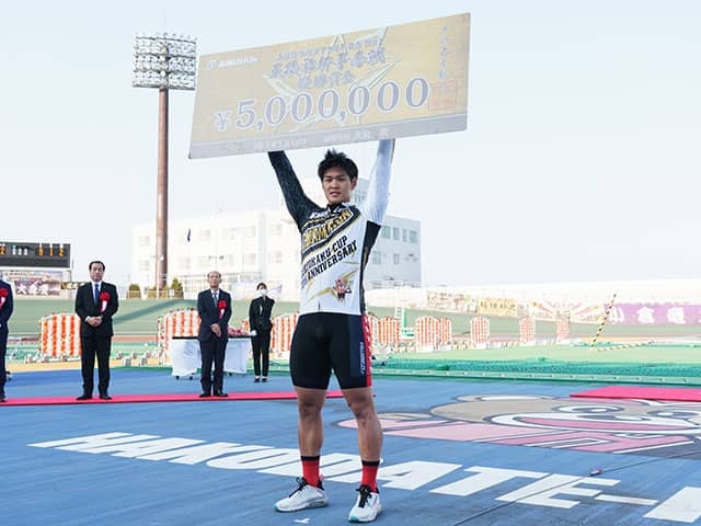 今日は、初手のあの並びになったら、早めに動きのあったところから一発いけたらと思っていました。赤板で(犬伏湧也が)早く引くのかなと思ったのですが、意外と粘ったので焦りましたが、あとは落ち着いていけたし冷静に対処できたので、それが良かったと思います。最終HSで、犬伏(湧也)さんが先頭に出切る前ぐらいからそのラインにスイッチして、あとは前に踏むだけでした。感触も良かったので、行けるかなという感じでしたね。今日はさらに体調が良くなっていました。自力で勝てたのは大きかったです。昨年は、自分が自転車を始めるきっかけになった先輩(瓜生崇智)が優勝したので、今年は自分がと思っていました。次のレースも、しっかり頑張ります。応援してください。