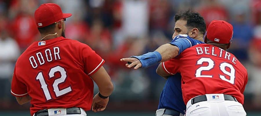 これは2016年5月15日(同16日)、レンジャーズとブルージェイズの試合で起きた。8回に死球で出塁したブルージェイズのバティスタが、続くスモーク(のち巨人)の三ゴロで二塁に激しいスライディング。ベースに入ったオドーアが、にらみ合いの末強烈な右ストレートをバティスタの顔面にお見舞いした。ここから両軍入り乱れる大乱闘に発展だ。
