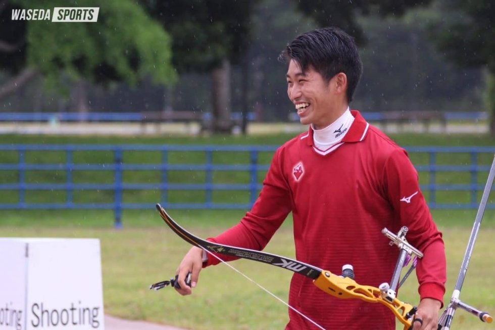 アーチェリーをするのは苦しかったですけど、アーチェリー部に行くのは楽しかったです。その一言です。実際ずっと技術的にも点数的にも全然結果がでない4年間で、毎晩考えるみたいなことがあったので、アーチェリーするのはぶっちゃけ嫌でしたし、アーチェリーに関してはずっとやめたいなと思っていました。ただアーチェリー部のメンバーとアーチェリーをするのは楽しかったので、アーチェリーはやめたかったけど、アーチェリーを続けられたのはアーチェリー部のみんながいたからというのはこの4年間通してあります。あとはすごく監督(遠藤宏之監督、平4政経卒=東京・早大学院)にはすごく感謝したいですね。監督には僕が高校生の時からお世話になっていて、物事に取り組む考え方もそうですし、監督が常々「今この瞬間を全力で」みたいなスローガンをおっしゃっていて、そこのスローガンは常々監督とお話をする時とかに感じていました。ふとした時に「逃げたいな」とか「苦しいな」とか思う時があるんですけど、そういう時でも監督の普段言われている言葉とかを思い出して、目の前のことに全力で取り組むという姿勢は今後も続いていく人生の中で一つ本当に大きな価値観として大切にしていくものだと思います。あとは監督の人柄というか監督ご自身のキャラクターみたいなところに僕は本当に尊敬の念を抱いています。本当に親身に相談に乗っていただいて、苦しい時期とか色々外部から言われた時に本当に適切なアドバイスをいただいたりとか、本当に心が折れそうな時に監督の一言が本当に支えになりました。言葉一つ一つに「自分たちと向き合ってくれているんだな」という思い入れを感じて、監督は本当に尊敬していますし、感謝しています。色々ありすぎて語り尽くせない気がするのでここら辺でやめておきます(笑)。ちょっと思い出が多すぎますね。