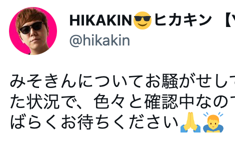 YouTuberのHIKAKINが17日、自身のインスタグラムを更新。みそきんについてコメントした。みそきんについてお騒…