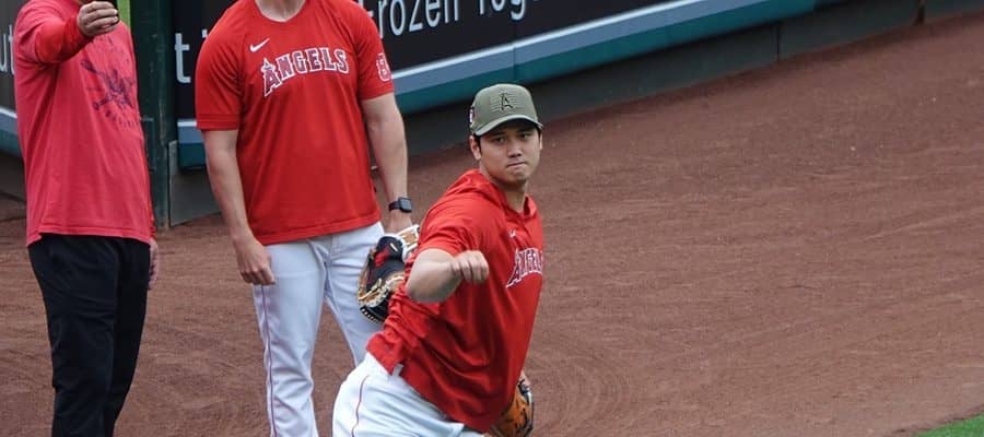 キャッチボールなどを行ったエンゼルス・大谷翔平【写真:川村虎大】