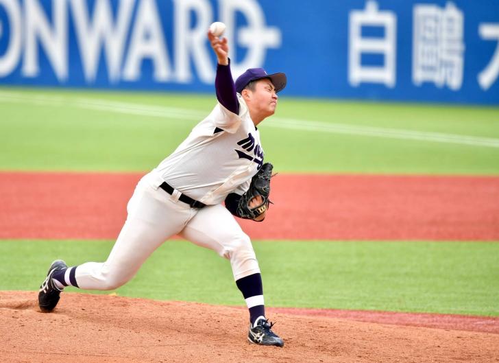 村田は普段通り、8つに上る豊富な球種と精密なコントロールで立大打線を手玉に取った。1点リードの7回には先頭の鈴木唯斗外野手(2年)を四球で歩かせたが、続く6番・安藤碧外野手(4年)が送りバントを試みてもファウルにさせ、進塁を許さない。カウント1-2と追い込んだ後、強攻に転じた左打者の安藤に外角低めのシンカーを引っ掛けさせ、ニゴロ併殺に仕留めた。「このコースに投げればこうなる、というイメージ通りにいきました」と会心の笑みを浮かべた。