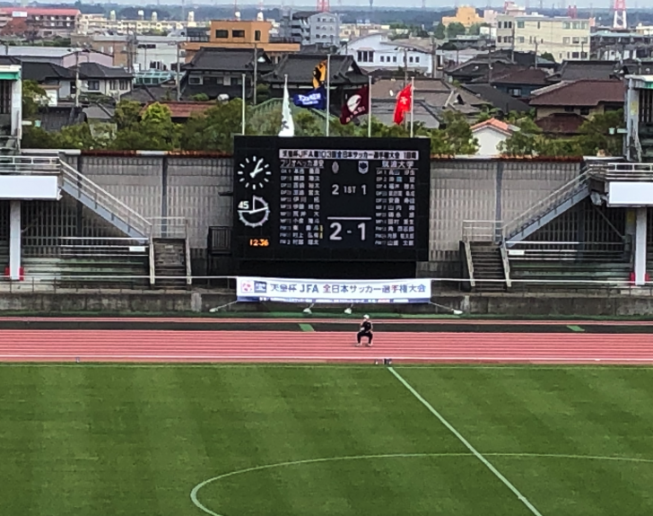 21日14時現在、浦安は前半を終えて2−1とリード。対する筑波も前半は固さが目立ったものの、徐々にペースを上げている。灼熱の太陽のもと、蹴球人たちのガチンコ勝負を多くのサッカーファン・サポーターが見守っている状態だ。