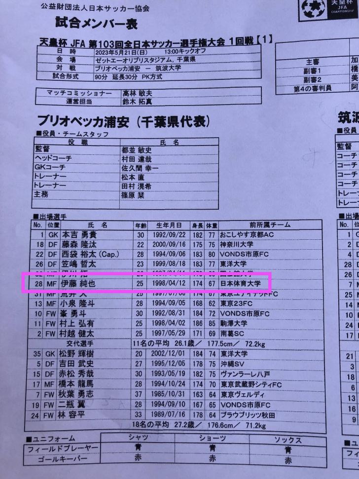 21日、市原臨海競技場で行われた(サッカー天皇杯・一回戦/ブリオベッカ浦安vs筑波大)試合開始33分、ファン・サポーターのどよめきが起こった。それもそのはず、サッカー日本代表・伊東純也と文字違いの同姓同名(⁈)伊東純也選手(浦安)がゴールを決めたのだ。スカパー!などで放送された一戦は、ネット上でもじわじわと話題を集めているようだ。