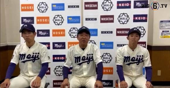 【ヒーローインタビュー】明治大学 田中武宏監督・飯森太慈(③佼成学園)・久野悠斗(②報徳学園)