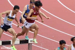 男子3000メートル障害に出場したのは菖蒲。レースは東京五輪、世界選手権代表の三浦龍司(順大)、同代表の青木涼真(ホンダ)を中心に展開された。三浦を先頭に、1000メートルを2分47秒で通過する。このタイムは菖蒲にとって「自分のイメージ通り」。その後、集団は2つに分かれると、第2集団で展開をうかがう。大会前、「シニアの選手を相手にチャレンジしたい」と意気込んでいた菖蒲。自身の課題としている1000メートルから2000メートルでありながら、実力者の集うこの集団の先頭を引っ張る場面も多くみられる。ここで、「自分の走りやすいペースで走ることができた」。これまで、ラスト1周で会場を湧かせるスパートを見せてきた菖蒲。ここでも、自身の強みとも語る圧巻のスピードで駆け抜け、6位でフィニッシュ。タイムも8分31秒92と自己記録と早稲田記録を更新し、「こういう大会で、初めてしっかりと自分のレースをできた」と充実感に満ちた表情を見せた。