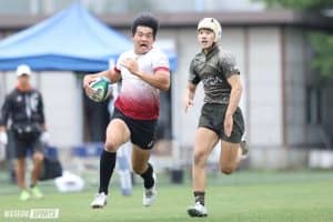 雨雲が空を覆い、どんよりとした空気の中、早大Dと武蔵大の練習試合が行われた。終始、相手の粘り強いディフェンスに攻撃が行き詰まり、なかなか自陣を抜け出すことができなかった早大D。相手にリードを許し、12ー14で前半を終える。後半序盤、早大Dは2連続でトライを決め、逆転に成功。しかし、その後は相手の攻撃力が勝り、ペースを奪われ失点。最後まで奮闘したが、33ー38とわずかに武蔵大に及ばなかった。