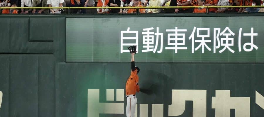 【実際の場面】「反則すぎる」 “2メートル”の大ジャンプで長打阻止…巨人・秋広の衝撃キャッチ
