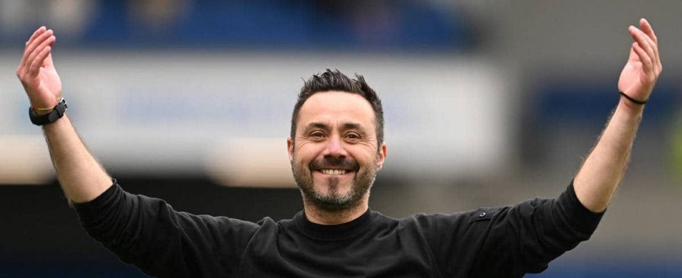ブライトン&ホーブ・アルビオンのロベルト・デ・ゼルビ監督とマンチェスター・シティのジョゼップ・グアルディオラ監督の試合中…