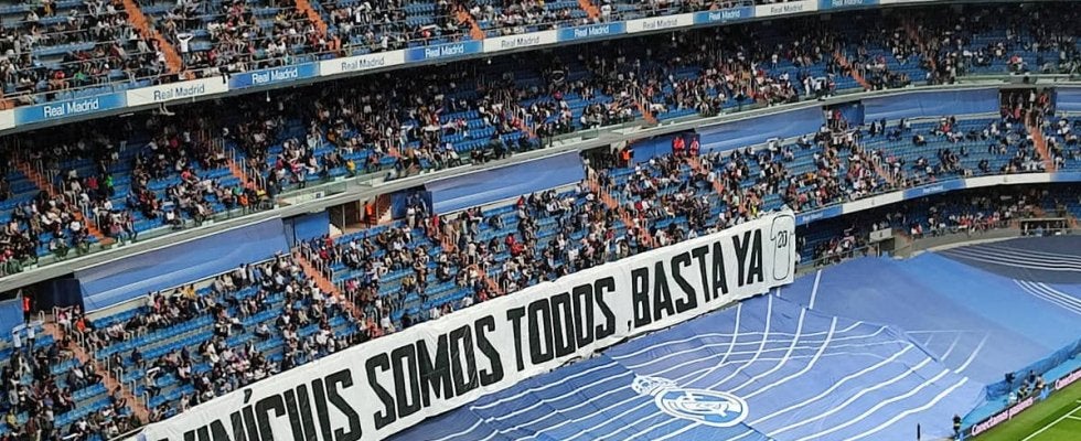 まあ、それはそれで置いておいて、今季最後のミッドウィークリーガのマドリッド勢がどうだったのか、お話ししていくことにすると。私はまず、水曜の早い時間帯に始まるマドリーとラージョの兄弟分ダービーをサンティアゴ・ベルナベウに見に行ったんですが、その試合は先週末、メスタジャで人種差別的野次や猿の物真似をされ、マリオ・ケンペス・スタンドの応援団と対峙したビニシウスにマドリーファンが連帯を示す絶好の機会に。Fondo sur/フォンド・スール(南側ゴール裏席)には「Vinicius somos todos, basta ya/ビニシウス・ソモス・トードス、バスタ・ジャー(私たちは全員、ビニシウス。もう沢山だ)」という横断幕が掲げられ、マドリーの選手たちも揃って彼の背番号20のユニを着て入場したんですが、何せ、今回の人種差別騒動はスペインだけでなく、全世界から非難される大ごとになってしまいましたからね。