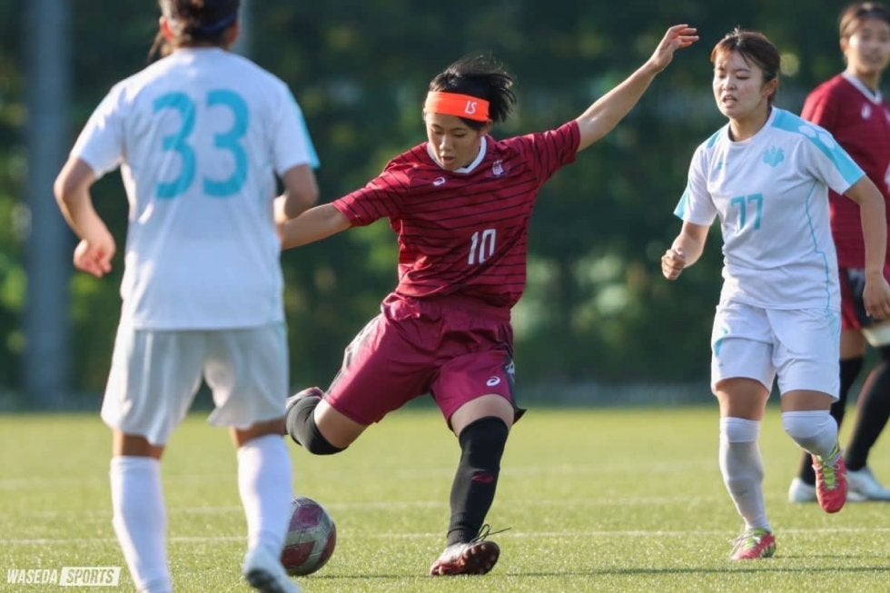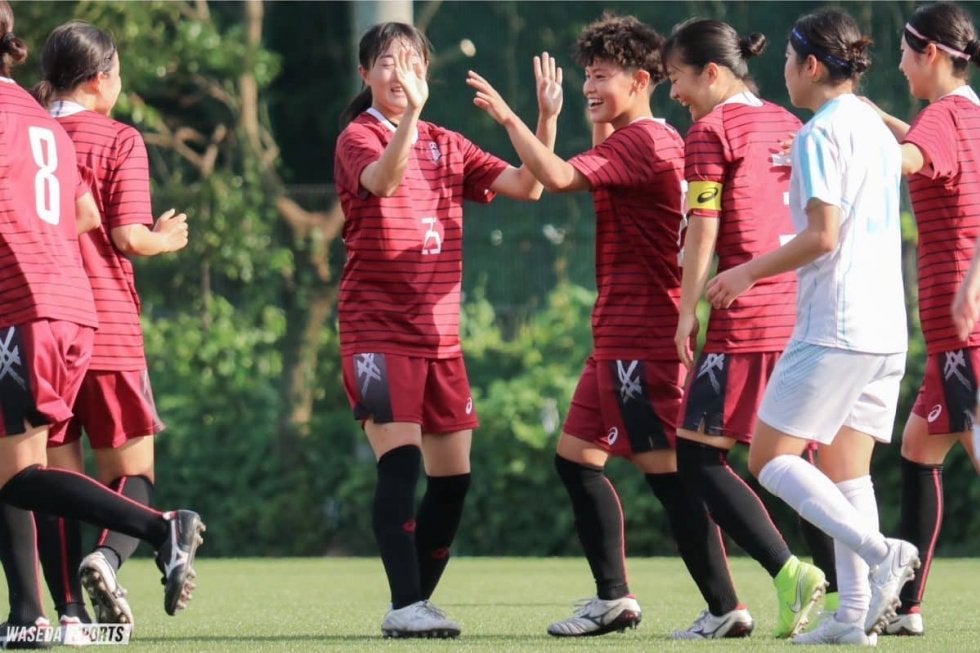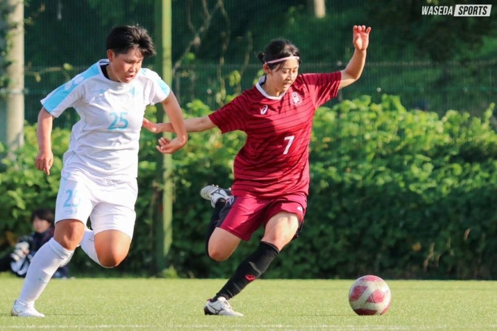 3点のリードで後半に入ったア女だが、全く攻撃の手を緩めない。48分には前線でボールを奪うと、白井が右足のミドルシュート。しかしこれは惜しくもキーパーに阻まれてしまう。53分には逆に、相手コーナーキックから枠内シュートを食らったが、ライン際で笠原がヘディングクリア。直後、セカンドを回収されてのクロスも笠原が防いだ。61分、DF夏目歩実(スポ4=宮城・聖和学園)のスペースへのパスに浦部が走る。ダイレクトであげたクロスに途中交代のFW千葉梨々花(スポ1=東京・十文字)が飛び込んだがわずかに合わない。68分には千葉から右サイドのMF三谷和華奈(スポ4=東京・十文字)、そしてゴール前のFW﨑岡由真(スポ1=埼玉・浦和レッズレディースユース)までつないだが、シュートは枠の上に飛んだ。チャンスを作りながらもなかなか追加点が生まれない試合終盤にはピンチも。87分に左サイドを突破されると、クロスを上げられるが戻った笠原と三谷で対応した。追加タイムには右サイドの裏を取られると、際どいクロスを上げられピンチに。あわや失点というところだったが、最後は夏目がクリアして事なきを得た。