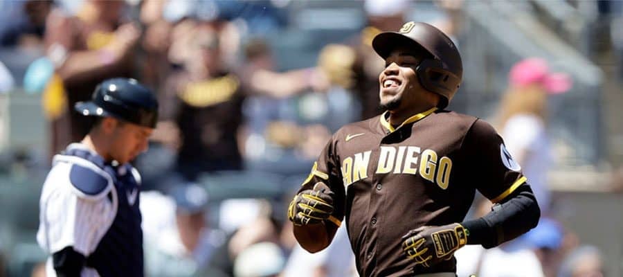 2連続暴投で生還するパドレスのホセ・アゾーカー(右)【写真:Getty Images】