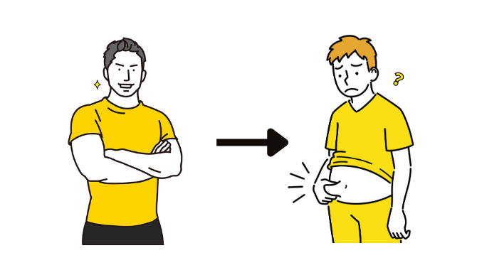 筋肉が脂肪に変わったと感じるのは、筋トレを辞めたことで筋肉量が少なくなる一方、運動量の低下によって同時に脂肪がついてしまうからです。