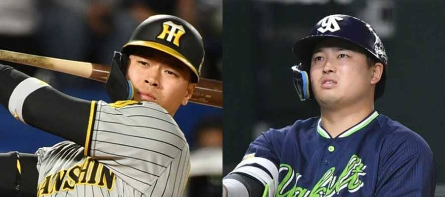 阪神・佐藤輝明(左)とヤクルト・村上宗隆【写真:小林靖】