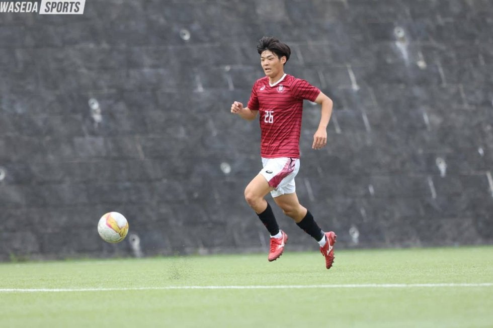 今季、常に課題としてきた前半の立ち上がりは硬さが残るものの、ヒルの活躍でセットプレーでのピンチを切り抜ける。13分にはMF植村洋斗副将(スポ4=神奈川・日大藤沢)のクロスにMF松尾倫太郎(人2=千葉・八千代)が合わせ、チャンスをつくるもオフサイドとなる。しかし、ここから早大はペースをつかむと、ペナルティーエリア付近でボールを繋ぎ、チャンスを伺う。30分、DF森璃太(スポ4=川崎フロンターレU18)が中盤からロングシュートを打つが、惜しくも枠を外れる。互いにゴールネットを揺らせないまま、前半が終了した。