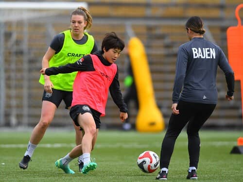 「4月のなでしこジャパンの(欧州)遠征のときに、GKの(田中)桃子さんから『シュートスピードがめっちゃ速くなった』って言われてうれしかった。スウェーデンにきて普通のスピードでシュートを打つと止められてしまうので、止められないように打っていたら速くなっていました」