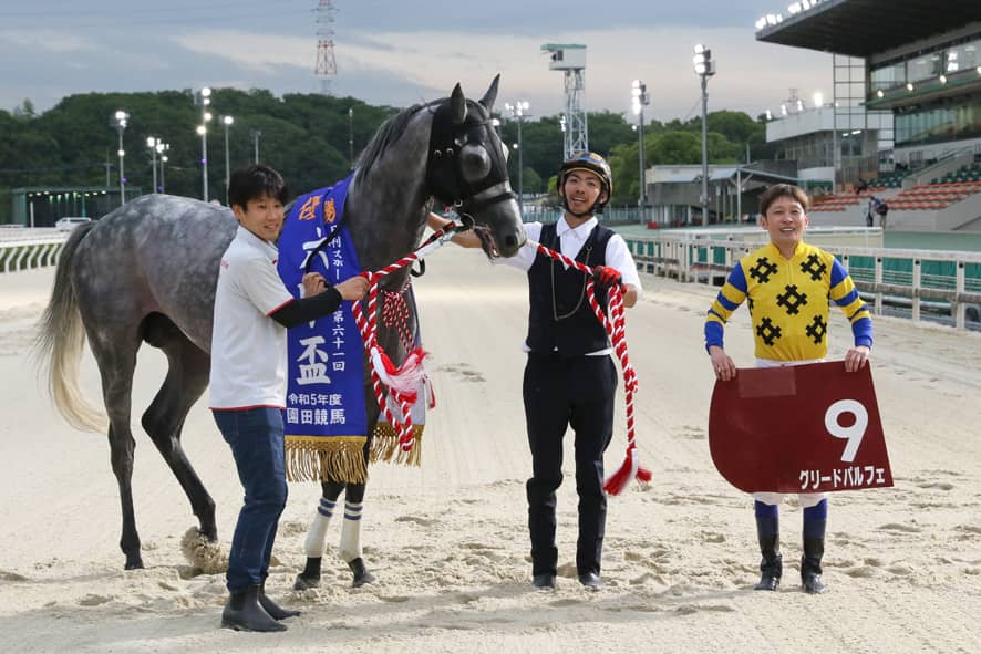 「グリードパルフェは折り合いのつく馬ですし、並ぶと抜かさない強さがあるので、今日のレースは理想的な展開だったと思います。次走も馬主と相談しながら、あまり長時間移動にならない輸送で県外を考えています。今後も応援よろしくお願いします」